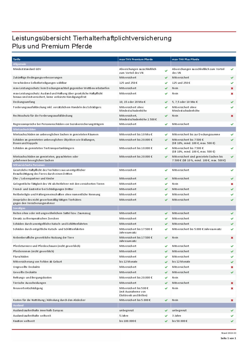 zum Beispiel: Pferdehalterhaftpflichtversicherung Reitpony ab € 45,66 jährlich (€ 125,- SB) oder € 40,29 jährlich (€ 250,- SB) Reitpferd ab € 66,73 jährlich (€ 125,- SB) oder € 58,88 jährlich (€ 250,- SB) Unberittenes Pferd / Pony ab € 29,85 jährlich 20% Nachlass für jedes weitere Tier Alle Haftpflichtversicherungen auch ohne Selbstbeteiligung möglich !!! >Leistungsübersicht Pferdehaftpflicht<